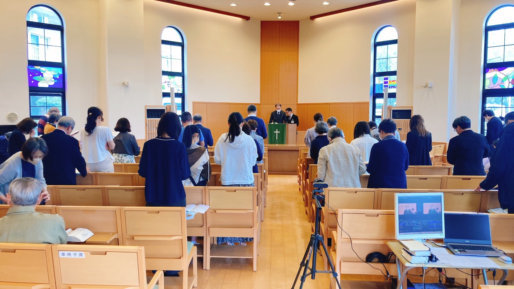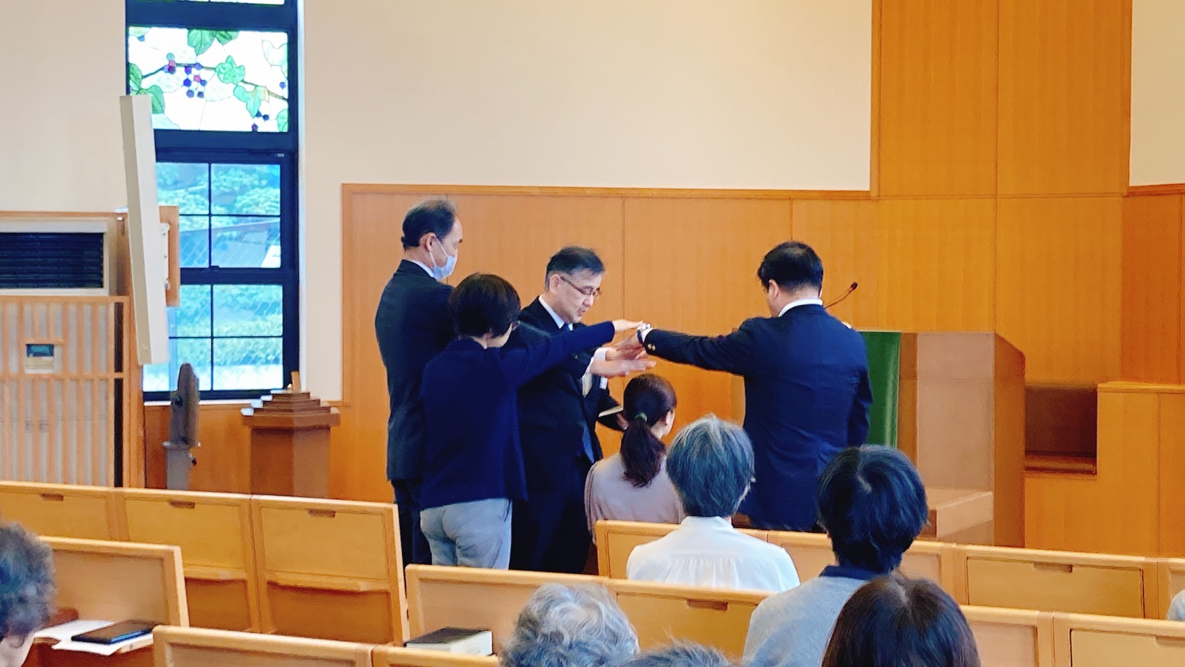 礼拝の中で、一人の姉妹の執事就職式が行われました。礼拝後の愛餐会ではコロナ禍後、久しぶりに手作りの昼食をとりながらイースターをお祝いし、感謝と喜びのひとときとなりました。14時からのユース集会では、教会の若者たちが賛美や交わりの時をもち、アイスクリームパーティーで盛り上がりました。久しぶりに集ってくれた若者もいて格別にうれしい会となりました。