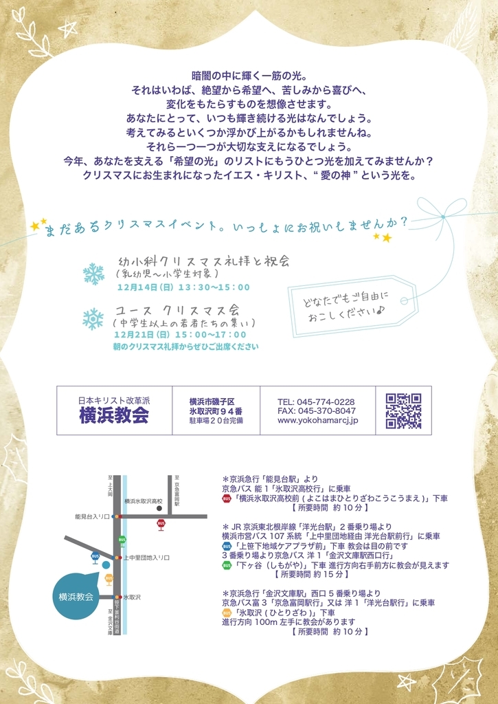 メッセージ「あなたのそばにもクリスマス」:千ヶ﨑基牧師